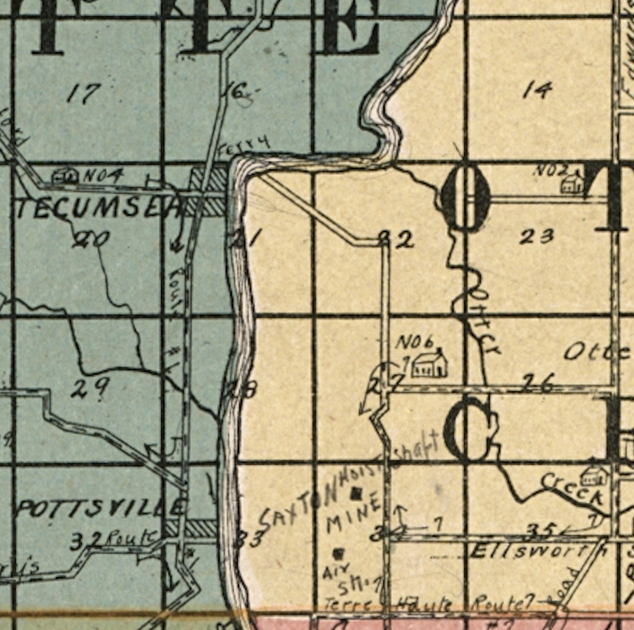 The Wabash and Eric Canal once ran through the land, as highlighted on some of the maps above. You can see actual physical remnants of it even to this day on the land itself.