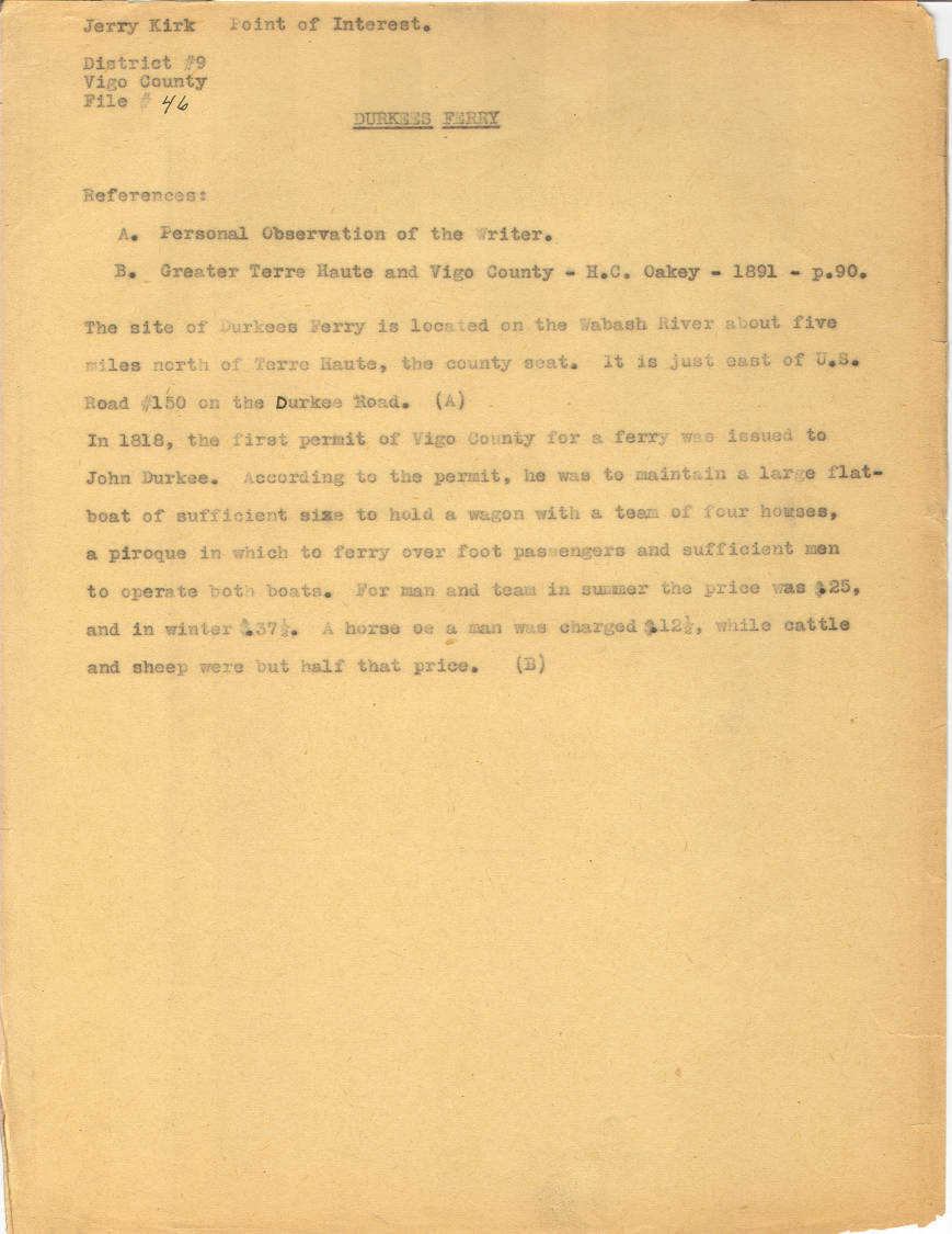 If you visit the un-incorporated town of New Goshen Indiana, you’ll stumble upon Durkees Ferry Road. It turns out, this ferry actually crossed the river on Broadacres Farmland.